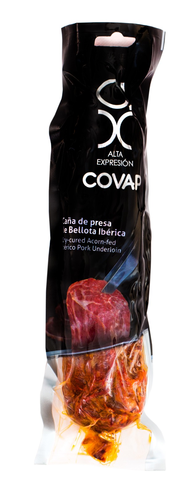 Our Alta Expresión Dry-cured Acorn-fed Ibérico Pork Underloin, for Spanish presa, has a delicious flavor, with slight hints of a variety of premium quality natural spices. Its pearly, marbled fat gives it a juicy, succulent texture.